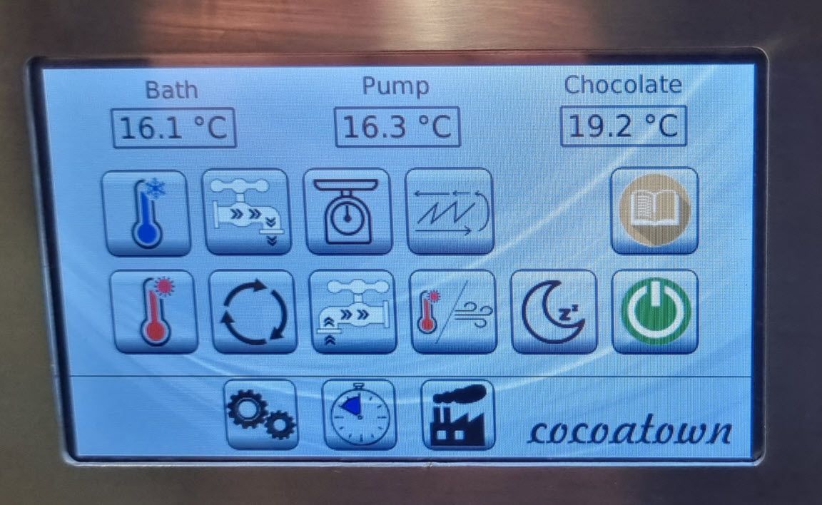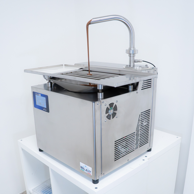 This can, of course, be done laboriously by hand, i.e. by seeding. Here, chocolate is heated to 45° and then cooled down to approx. 27°C with adding hard chocolate pieces by constant stirring. It is then heated up again to the processing temperature. The process can take up to 40 minutes and you have to be constantly present, e.g. for stirring.
