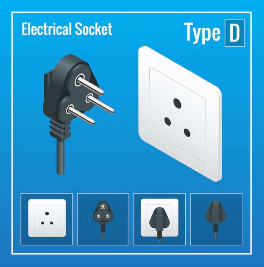 The 230V version comes with a "D" type plug. Please use an adapter for the local plug type